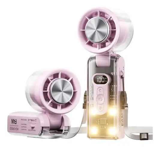 Espejo de LED Chanchito con Ventilador USB Recargable - Rosa
