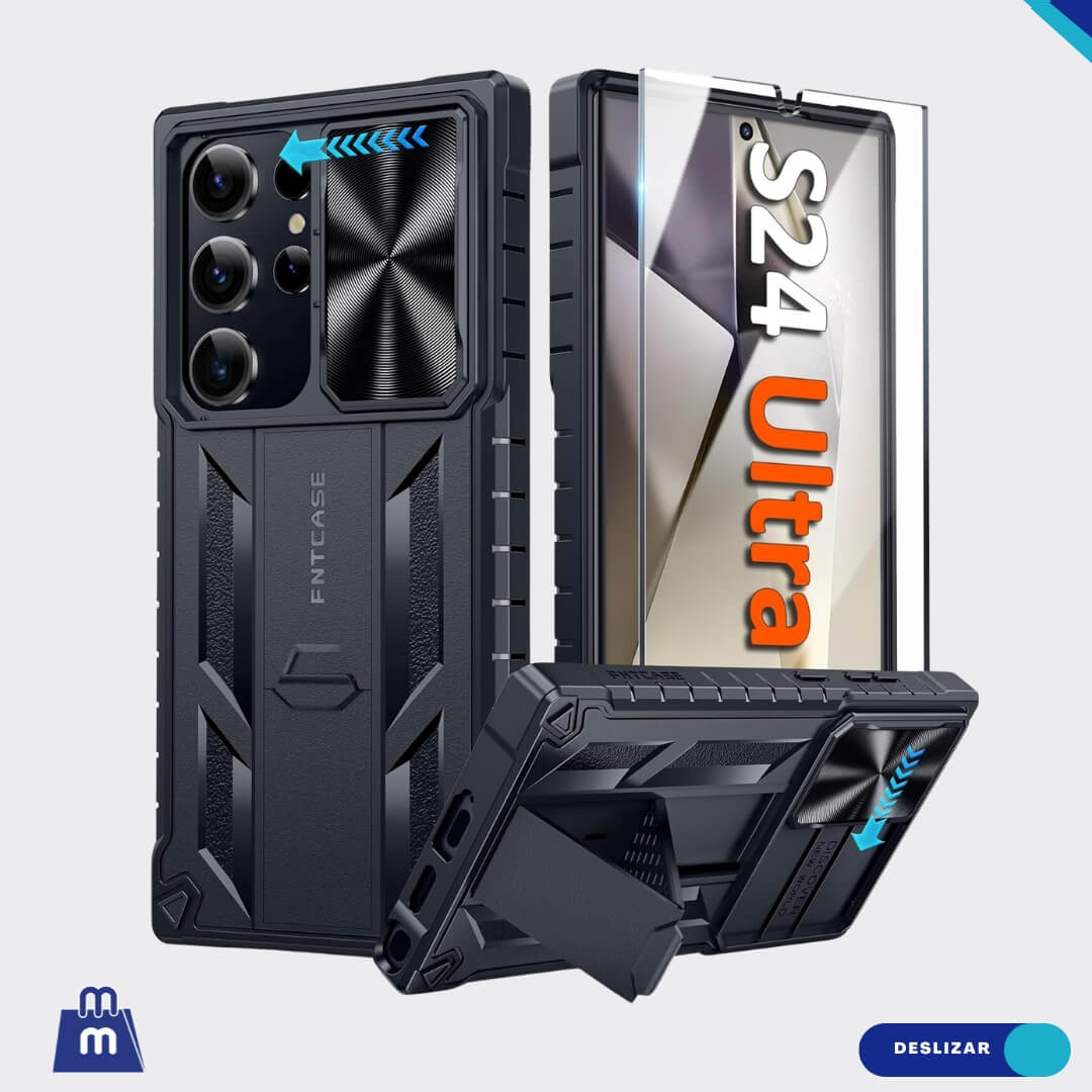 FNTCASE para Samsung Galaxy S24 Ultra: Protección de Grado Militar con Soporte y Deslizable para Cámara