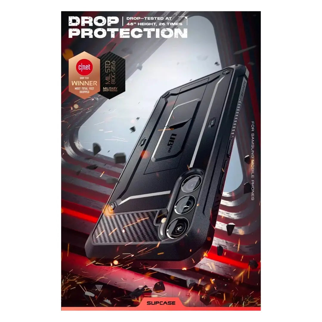 Descubre la funda Supcase UB Pro diseñada para el Samsung Galaxy S23 Fe Fan Edition (2023). Este estuche negro de tres cuerpos con gancho proporciona una protección 360°, certificación militar MIL-STD-810G y una práctica funda de clip para cinturón que gira 360 grados. Con parante o apoyo para modos de inclinación horizontal y vertical. ¡Protege tu Galaxy S23 Fe con estilo y confianza!"