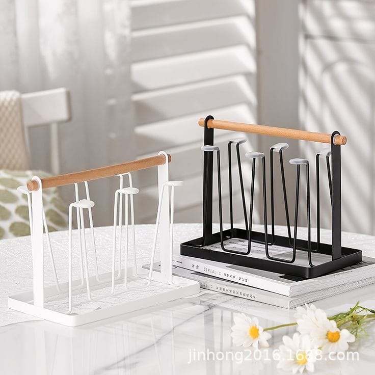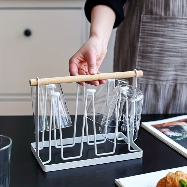 Escurridor de Vasos y Tazas con Manija de Madera - Elegante y Funcional